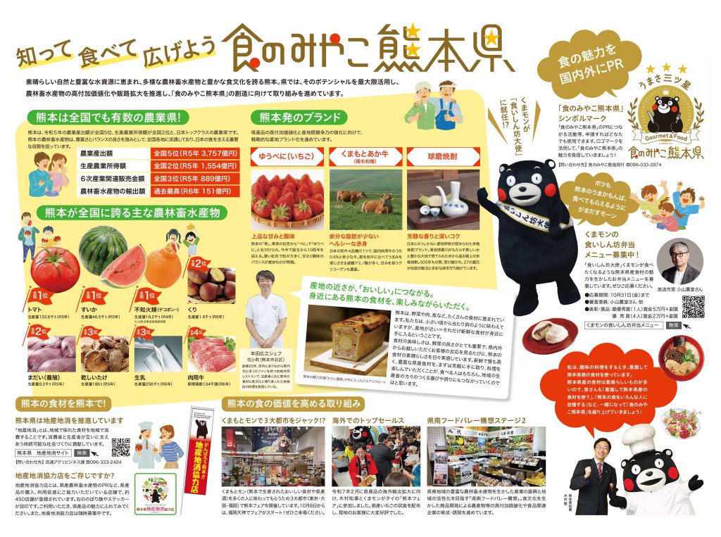 本県は令和7年7月、「食のみやこ熊本県」創造推進ビジョンを策定した。これは、豊かな「食」のポテンシャルを国内外に発信し、地域経済の活性化をめざすもの。そこで今回は、熊本県広報誌「県からのたより」(令和7年秋号)に掲載されたものを紹介したい。