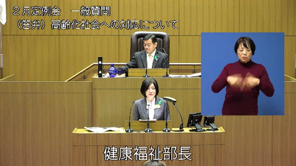 【答弁(健康福祉部長)】⑴県では、介護分野への就職フェア開催や、外国人を雇用する事業所に対する家賃助成、介護テクノロジー導入事業所への補助、処遇改善加算に係る相談支援などに取り組んでいる。また、介護テクノロジー導入等に取り組む事業者をワンストップで支援する相談窓口を来年度新たに設置する。さらに、働きやすい職場づくりに取り組む事業所や生き生きと働く介護職員のインタビューを動画にまとめ広く発信している。⑵県では、認知症になっても住み慣れた地域で安心して暮らすことができるよう、医療体制の構築、介護従事者等への研修、認知症サポーターの養成などに取り組んでいる。また、来年度から直接御本人や御家族と意見交換し、認知症の人の視点に立った施策の推進に生かしていく。